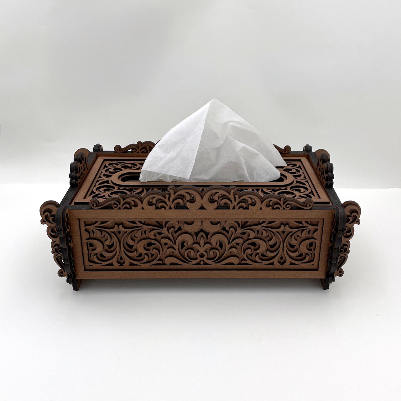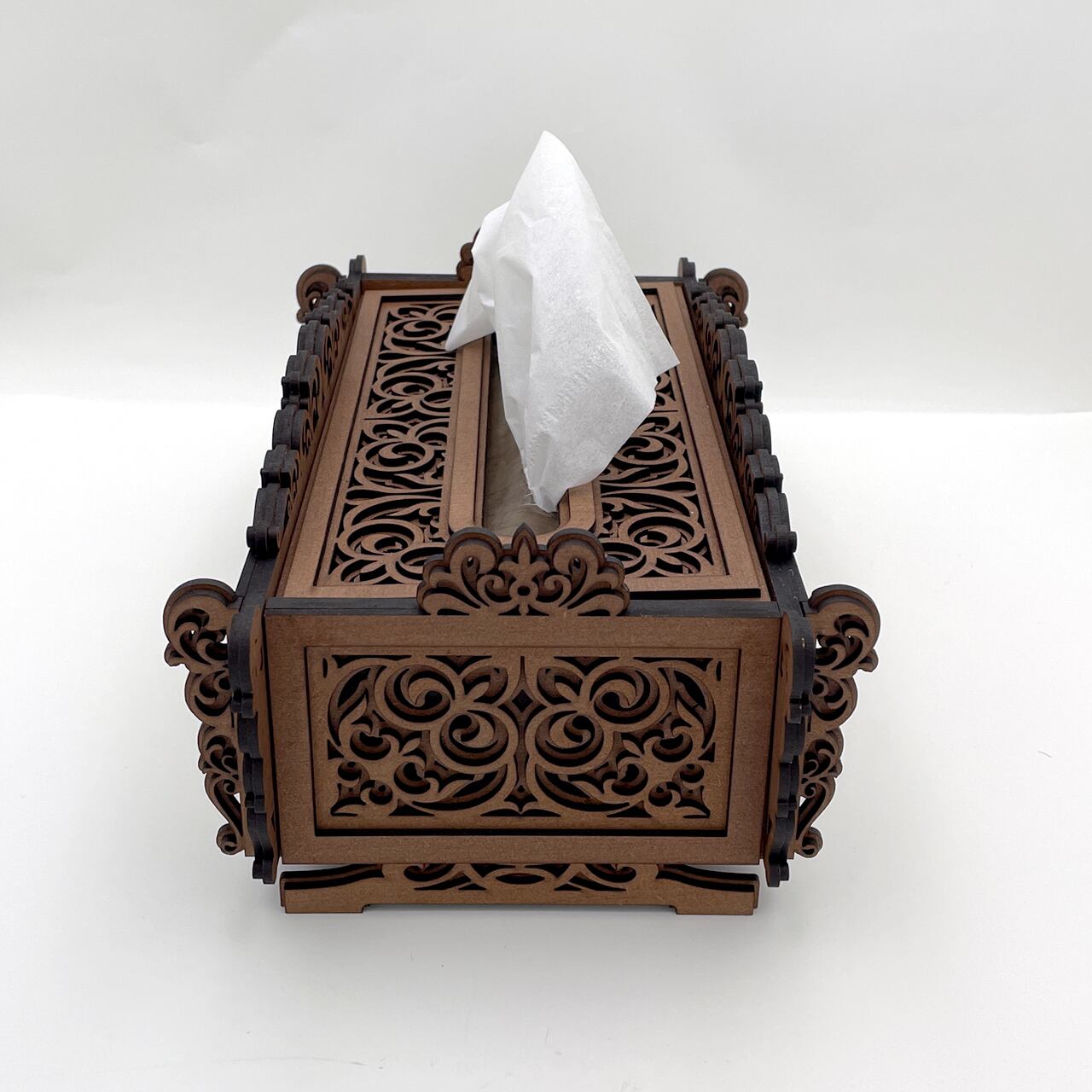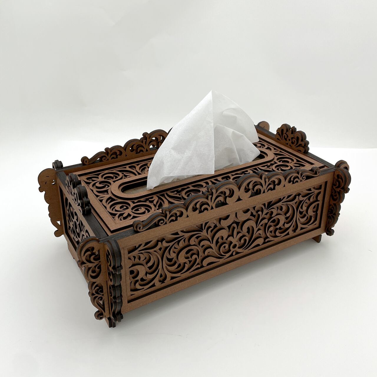レーザーカットで仕上げた木製のティッシュケースです。