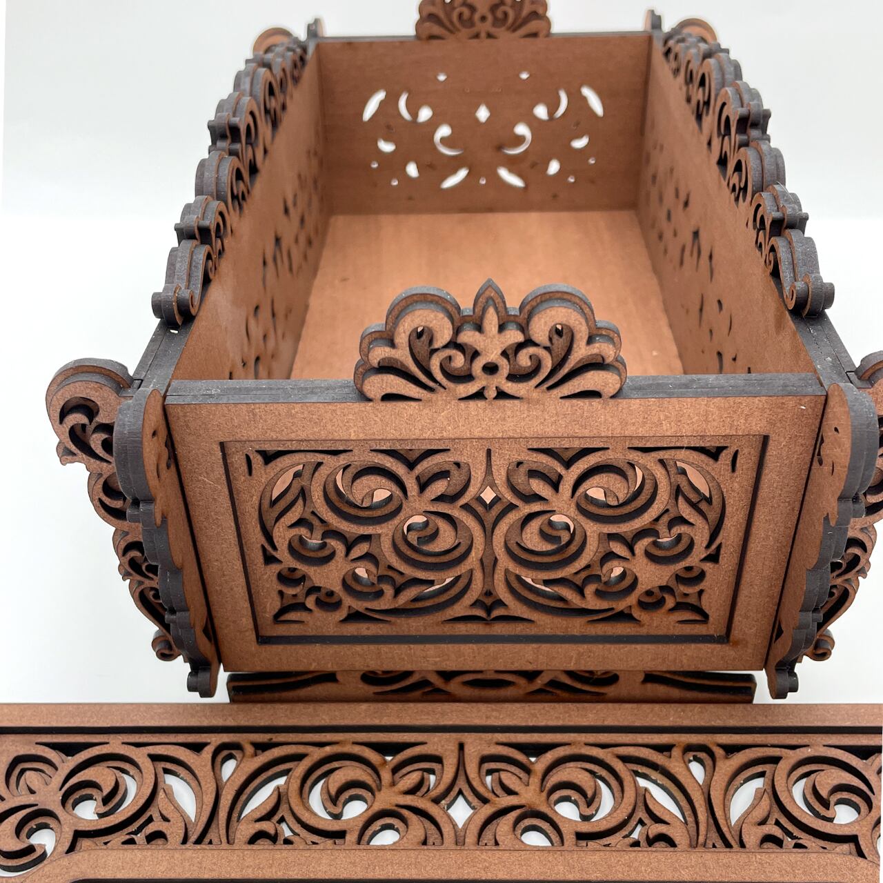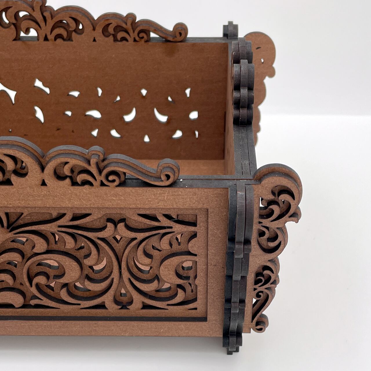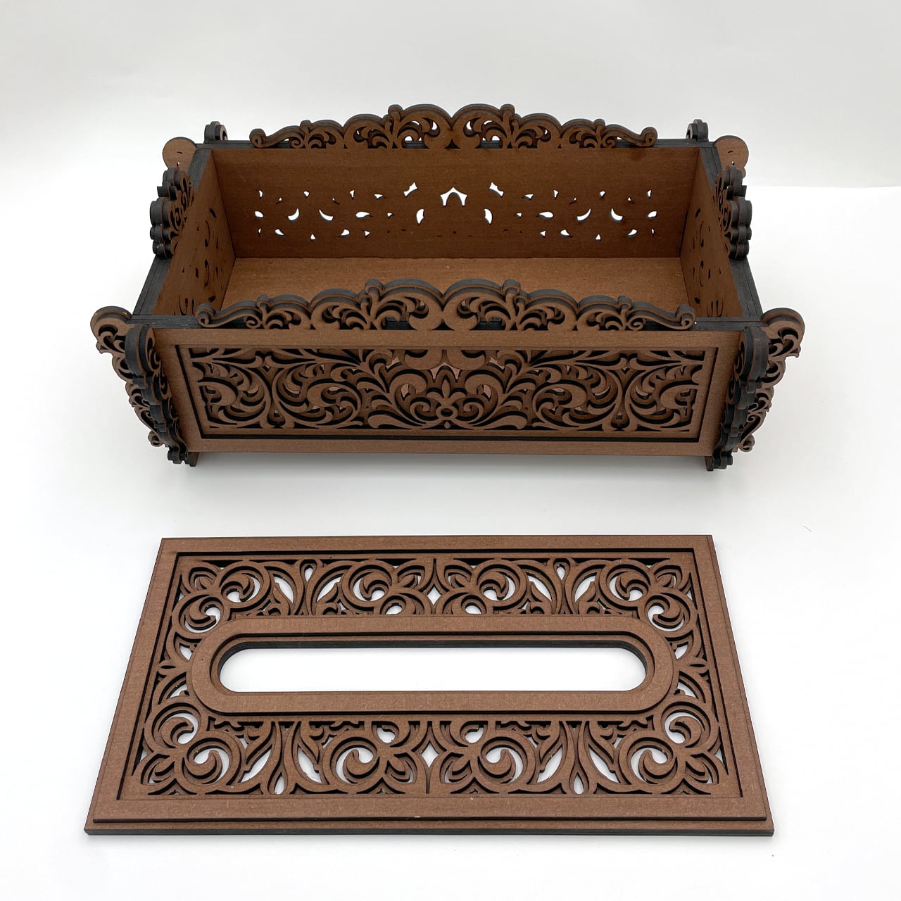レーザーカットで仕上げた木製のティッシュケースです。